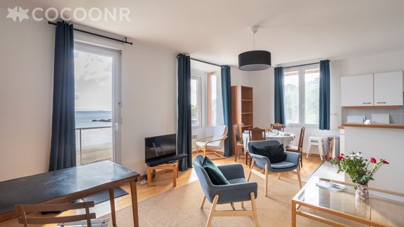 Ce joli appartement se situe au 3ème étage, dans l'ancien hôtel Ar Vro, les pieds dans l'eau. Draps et serviettes en supplément.