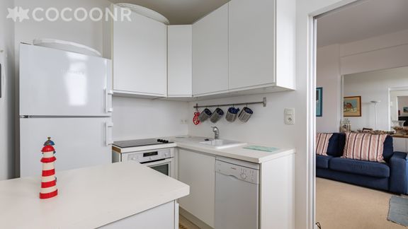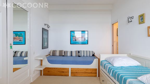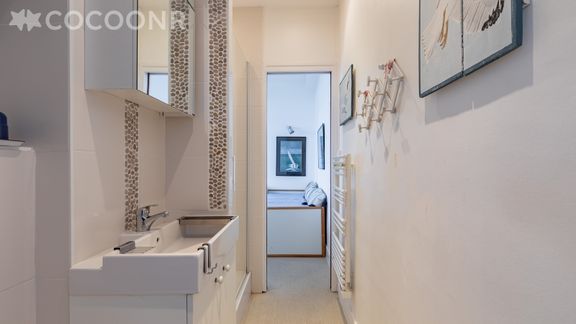 Situé au 1er étage avec ascenseur, l'appartement de 50 m², décoré avec goût, dans un esprit marin, peut accueillir jusqu'à 4 personnes. Il se compose de la manière suivante :