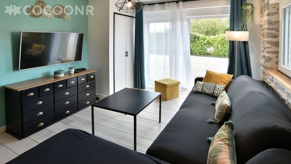 - Une pièce de vie de 47 m² avec TV, canapé et espace repas