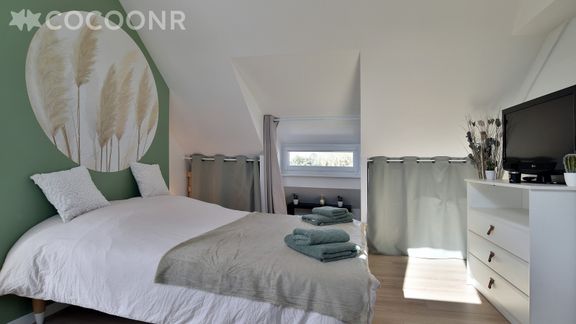 - Chambre 2 : avec 1 lit queen-size (160×190)