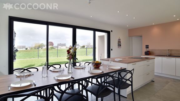 Déçu de ce séjour, tout d'accord les hôtes sont très intrusif par message et veulent absolument nous rencontrer le lendemain même si l'entrée c'est faite librement. Nous menace de venir voir à qu'elle heure nous arrivons, car après 20h il y a un supplément. Ensuite la maison n'est pas totalement terminée, le dérouleur de papier dans les wc du bas est un tuyau qui n'est pas encore raccordé, les spots extérieurs de toute la maison ne sont pas installés, les fils sont donc apparents, les finitions peinture, joints et autres sont bâclés. On ressent simplement le fait de vouloir faire au plus vite pour rentabiliser le crédit. L'emplacement est difficile d'accès car lotissement en chantier, chemin avec d'énormes trous, boue et autres pas pratique. Aucune intimité et jardin collé a celui du voisin. Suite à un soucis avec la poignée du jacuzzi on nous donne un devis de 750e. En appelant d'autres artisans ils nous disent que c'est impossible. Bref on s'en complètement l'arnaque du début à la fin