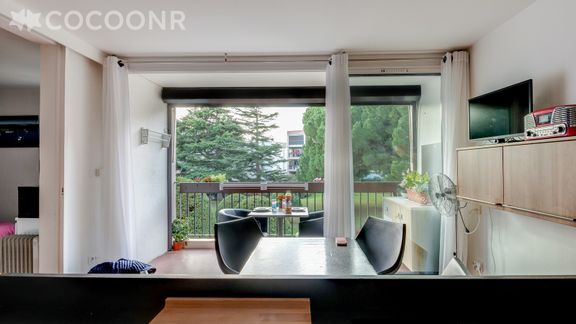 - Une pièce de vie lumineuse avec espace repas, accès balcon, TV