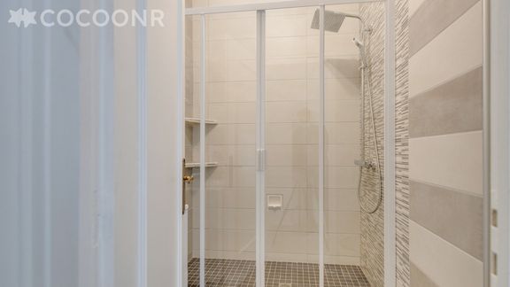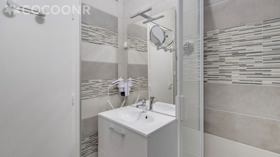 - Salle de bain avec douche à l'Italienne, sèche-cheveux et miroir grossissant