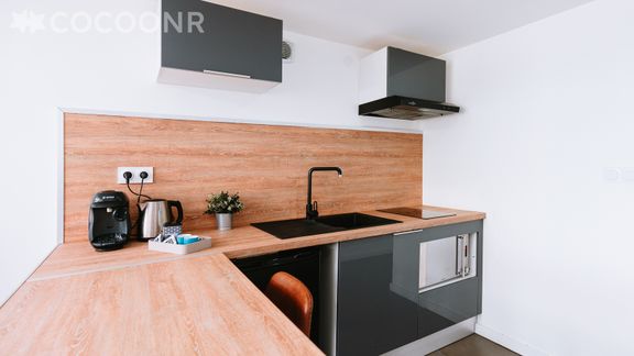 - Une kitchenette équipée avec notamment : machine à café à dosette, bouilloire électrique, four/four à micro-ondes, plaques de cuisson...