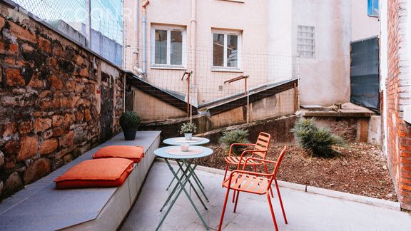 - Une cour avec terrasse privée exposée sud sans vis-à-vis, de 20 m², végétalisée et avec mobilier pour profiter des beaux jours
