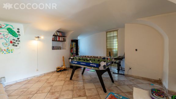 - Une salle de jeu (salle voutée très fraiche en été) avec baby-foot, chaise romaine, clavier électronique, chaine HiFi, bibliothèque...