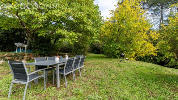- Un jardin privé et clôturé par des haies de 5 764 m² (si animaux : peuvent donc se faufiler et sortir du jardin) avec mobilier pour profiter des beaux jours et jeux de jardin (filet badminton, quad électrique, ballon, trampoline, portique avec balançoire)