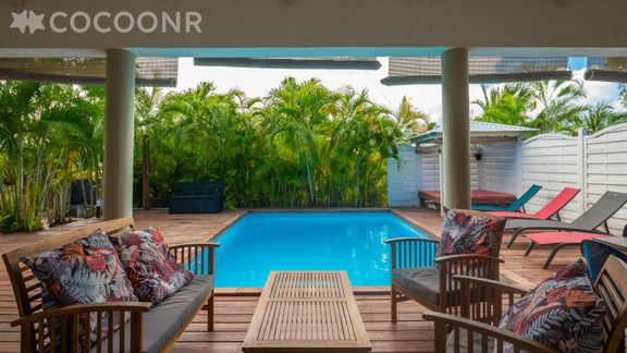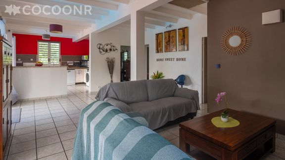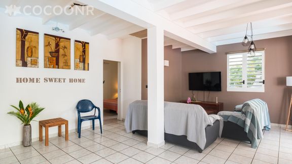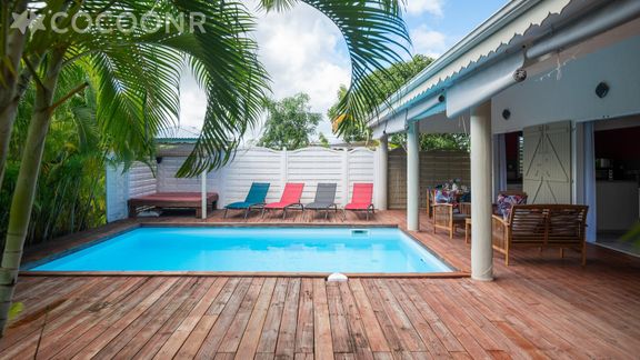 L'agence Cocoonr/Book&Pay vous propose à la location, à Saint-François, cette maison de plein pied avec piscine, d’une superficie de 82 m² et pouvant accueillir jusqu’à 6 voyageurs. Elle est composée d’une pièce à vivre de 45 m², d'une cuisine ouverte équipée, de trois chambres climatisées, de deux salles d'eau (avec douche) et vous pourrez profiter d’un beau jardin d’environ 750 m². Wifi, draps et serviettes inclus, nous n’attendons plus que vous !