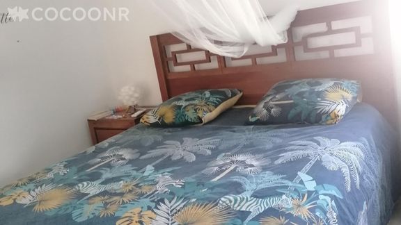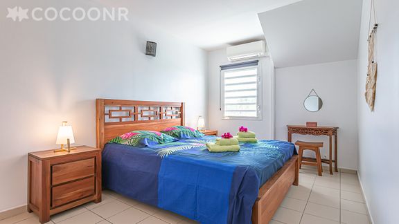 - Chambre 1 (12.8 m²) : un lit queen-size (160×200), climatiseur et moustiquaire