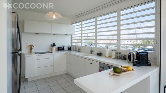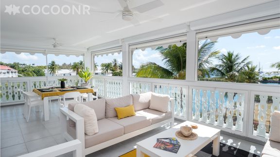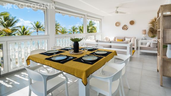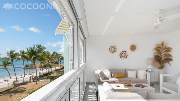 L'agence Cocoonr/Book&Pay vous propose à la location, à Saint-François, ce charmant appartement avec vue mer, la plage est au pied de l'appartement, d’une superficie de 125 m² et pouvant accueillir jusqu’à 6 voyageurs. Situé au 2e étage (avec ascenseur), il se compose d’une jolie pièce à vivre de 22 m², d'une cuisine équipée, de deux belles chambres, deux salles d'eau et de deux loggia dont une d'environ 32 m² pour profiter de la vue. Draps et serviettes inclus, nous n’attendons plus que vous !