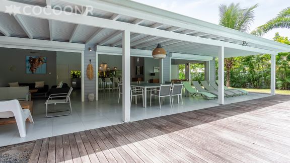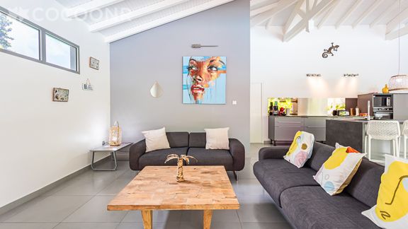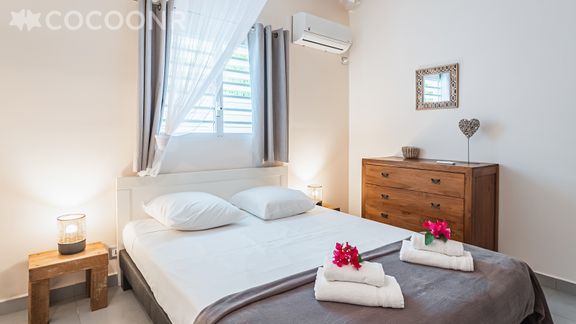 L'agence Cocoonr/Bookandpay vous propose à la location, à Saint-François, cette charmante maison climatisée avec piscine, d’une superficie de 140 m² et pouvant accueillir jusqu’à 6 voyageurs. Elle est composée d’une jolie pièce à vivre de 80 m², d'une cuisine équipée, de trois belles chambres, de deux salles de bain (avec douche) et vous pourrez profiter d’un bel espace extérieur. Wifi, draps et serviettes inclus, nous n’attendons plus que vous !
