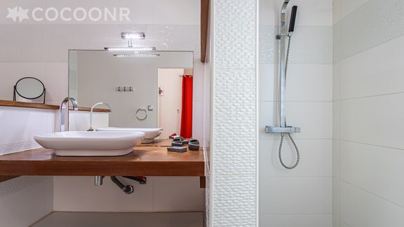- Chambre 1 : avec un lit queen-size (160×200), une salle d'eau attenante avec douche