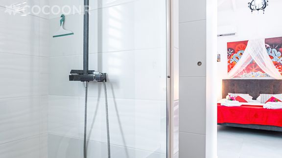 - Une chambre à coucher avec lit queen-size (160×200), salle de douche et WC attenants.