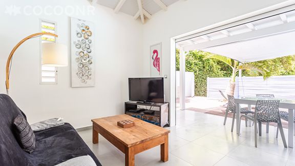 Cocoonr/Bookandpay propose cette charmante maison climatisée de 50 m² avec piscine à louer à Saint-François, qui peut accueillir jusqu'à 2 voyageurs. Elle dispose d'un salon de 25 m², d'une cuisine entièrement équipée, d'une chambre, d'une salle de bain (avec douche) et d'un bel espace extérieur. Wifi, draps et serviettes inclus, nous vous attendons !