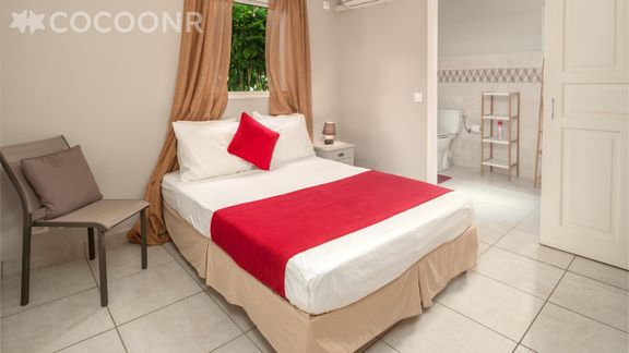 - Chambre 1 : un lit double (140×190) et une salle d'eau attenante avec douche et WC