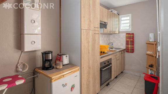 - Une cuisine équipée avec notamment : bouilloire électrique, four, four à micro-ondes, grille-pain, plaques de cuisson...