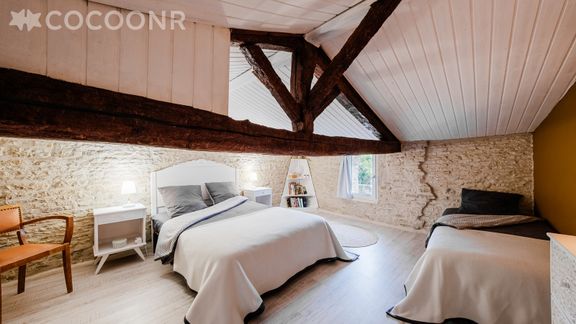 L'Agence Cocoonr/Book&Pay vous propose, à Saint-Georges-d'Oléron, cette maison de charme avec une partie grange rénovée en pierre, atypique avec ses poutres transversales à mi hauteur à l'étage. A 2km de la mer, la maison d’une superficie de 95 m² peut accueillir jusqu’à 6 voyageurs. Elle est composée d’une jolie pièce à vivre de 48 m², d'une cuisine équipée, de trois belles chambres, d'une salle de bain et vous pourrez profiter d’un jardin d’environ 100 m². Wifi (fibre optique) inclus, nous n’attendons plus que vous !