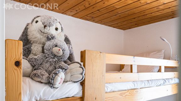 - Une chambre cabine avec un lit superposé : 1 lit double (140×190) et 1 lit simple (90×190)