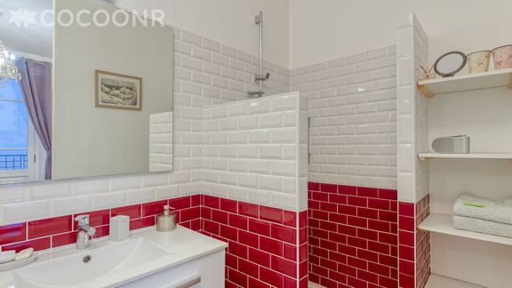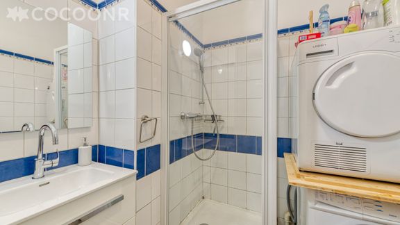 - Une salle d'eau avec douche, lave linge, sèche linge et WC