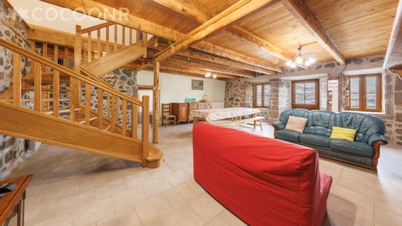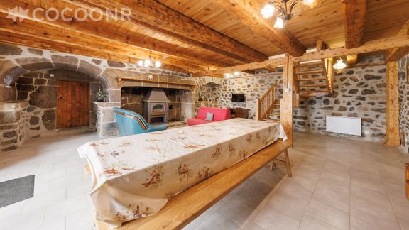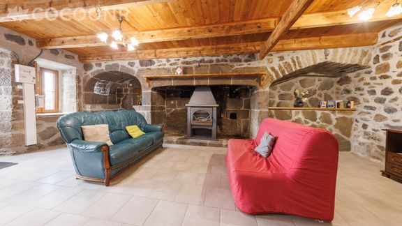 - Une pièce de vie de 15 m² avec canapés (dont un convertible en lit double), cheminée (bois fourni), salle à manger