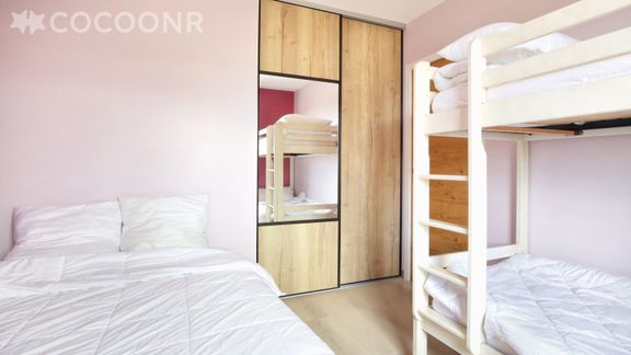 - Chambre 2: un lit double (140×190) et lit superposé (2 couchages, 90×190)