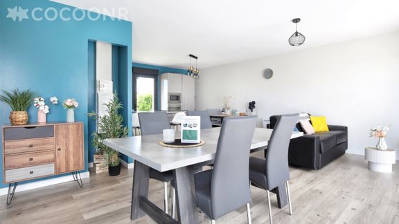 - Une pièce de vie de 40 m² avec un canapé, espace repas, TV...