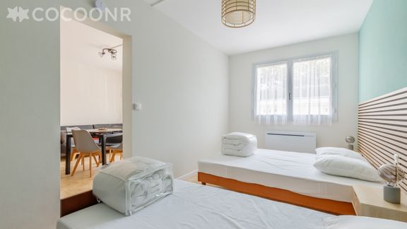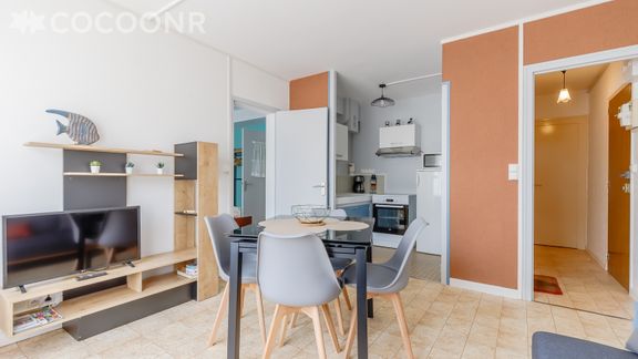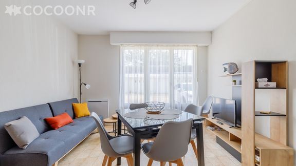 L'agence Cocoonr/Book&Pay vous propose à la location, sur la commune de Saint-Jean-de-Monts, ce charmant appartement à 5 minutes à pied de la plage, d’une superficie de 48 m² et pouvant accueillir jusqu’à 6 voyageurs. Situé au rez-de-chaussée, il se compose d’une jolie pièce à vivre, d'une kitchenette équipée, de deux belles chambres et d'une salle de bain. Nous n'attendons plus que vous !