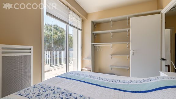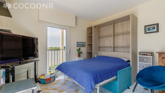 Nous vous proposons à la location, à Saint-Jean-de-Monts, ce charmant appartement à moins 250 m de la plage avec vue sur lac et golf, avec piscine, d’une superficie de 40 m² et pouvant accueillir jusqu’à 4 voyageurs. Situé au 1er étage (sans ascenseur), il se compose d’une jolie pièce à vivre de 22 m², d'une cuisine équipée, d’une belle chambre, d'une salle de bain avec baignoire.