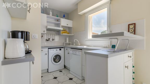 - Une cuisine équipée avec notamment : bouilloire électrique, four, four à micro-ondes, grille-pain, lave-vaisselle, plaques de cuisson, une machine Nespresso...