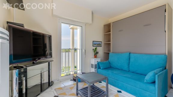 - Une pièce de vie de 22 m² avec un grand écran TV et un lit escamotable pour deux personnes