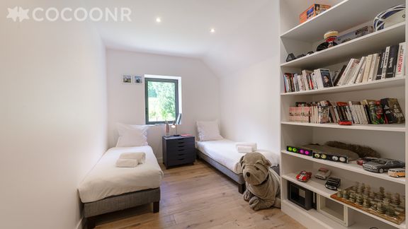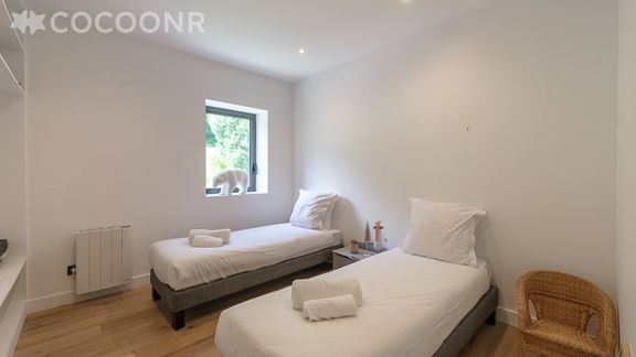 - Chambre n°1 : 2 lits simples (90x190) pouvant être réunis en lit double, penderie et niches de rangement