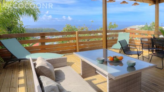 - Une terrasse de 36 m² exposée sud offrant une vue sur l'océan indien. Elle est équipée de mobilier pour profiter des beaux jours