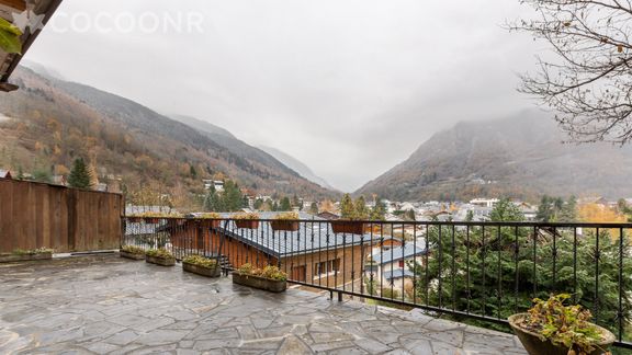 - Une terrasse de 30 m² exposée plein sud avec vue sur la montagne et le Pla d'Adet. Du mobilier de jardin en acacia avec fauteuil et table basse est mis à votre disposition pour profiter des beaux jours.
