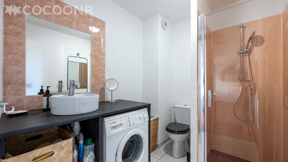 - Une salle d'eau avec douche, WC