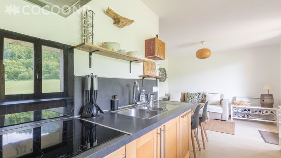 La région est magnifique. L'appartement est situé au bout d'une rue, à la campagne, au calme. Il est très bien aménagé et équipé. Les propriétaires ont été très prévenants.