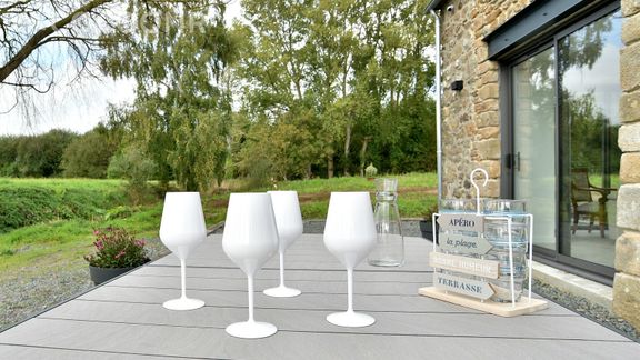 - Un beau jardin de 5 000 m² équipé de mobilier : table pour 10 personnes, chaises, parasol, barbecue électrique, transats et tables basses. Le jardin est non clos et entièrement accessible.