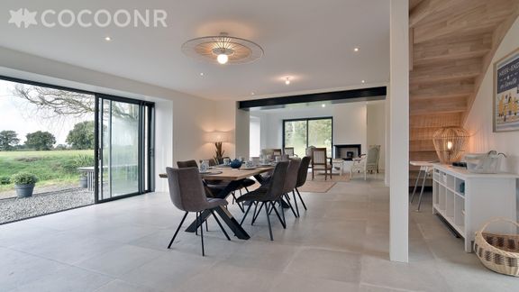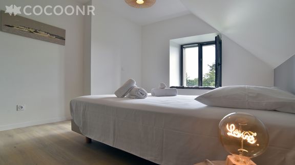 L'Agence Cocoonr/Book&Pay vous propose cette charmante longère de 1850 rénovée en 2024, d’une superficie de 225 m² qui peut accueillir jusqu’à 10 voyageurs. Elle est composée d’un espace de 80 m² comportant une jolie pièce à vivre, une cuisine équipée, cinq belles chambres, trois salles de bain et vous pourrez profiter d’un jardin d’environ 5 000 m². Wifi (fibre optique) à disposition. Le linge de lit et les serviettes ne sont pas inclus dans la réservation, mais peuvent être loués auprès de la conciergerie.