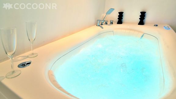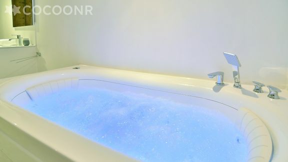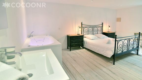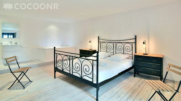 - Chambre parentale avec un lit queen-size (160×200), salle de bain attenante avec baignoire à remous