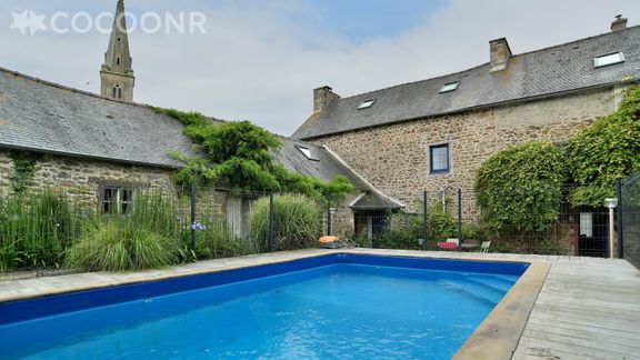 Nous vous proposons à la location, au cœur du village de Saint-Lormel, cette charmante maison avec piscine, d’une superficie de 240 m² et pouvant accueillir jusqu’à 11 voyageurs. Elle est composée d’une jolie pièce à vivre de 54 m² (avec cheminée), cuisine ouverte équipée, de six belles chambres, quatre salles de bain (avec douche et baignoire) et vous pourrez profiter d’un jardin d’environ 500 m².