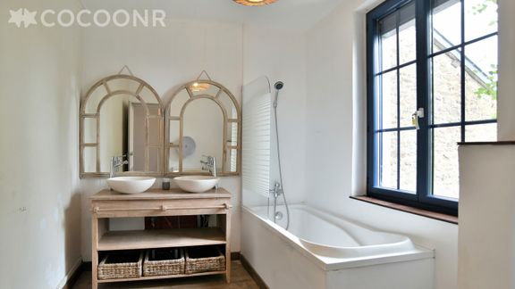 - Une salle de bain avec baignoire