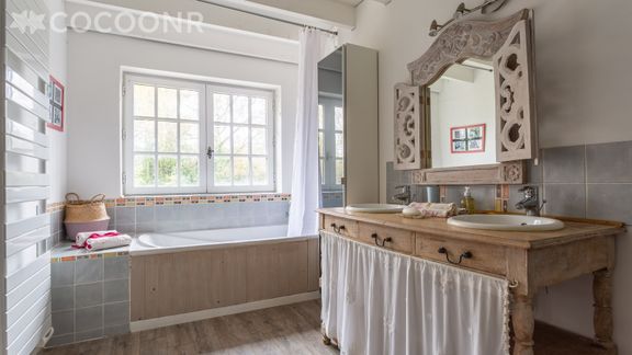 Elle est composée d'une pièce à vivre de 40 m², d'une cuisine équipée, de quatre chambres, d'une salle de bain (avec baignoire), d'une salle d'eau (avec douche) et vous pourrez profiter d'un jardin d'environ 1 500 m². Wifi (fibre optique), draps et serviettes inclus, nous n'attendons plus que vous !