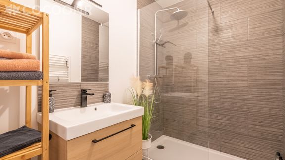 Il est utile de préciser également (l’annonce ne l’ayant pas mentionné) qu’il y a bien une télé dans le logement, et que les toilettes sont séparées. Il faut monter 3 étages sans ascenseur pour accéder à l’appartement. La salle de bain comporte une grande douche, elle est très agréable à utiliser.