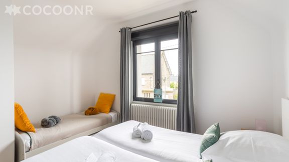 L'agence Cocoonr vous propose à la location, à Saint-Malo, à moins de 2 km de la Grande Plage du Sillon, cette charmante maison avec wifi, d’une superficie de 101 m² et pouvant accueillir jusqu’à 6 voyageurs. Elle est composée d’une jolie pièce à vivre de 34 m², cuisine équipée, de trois belles chambres, deux salles de bain (avec douche et baignoire) et vous pourrez profiter d’un jardin d’environ 50 m². Le ménage est inclus dans la location et du linge de qualité hôtelière 4* vous est fourni (draps, serviettes de toilette, torchons), votre lit sera préparé à votre arrivée.