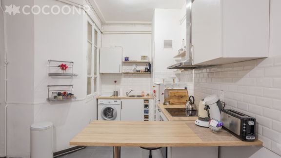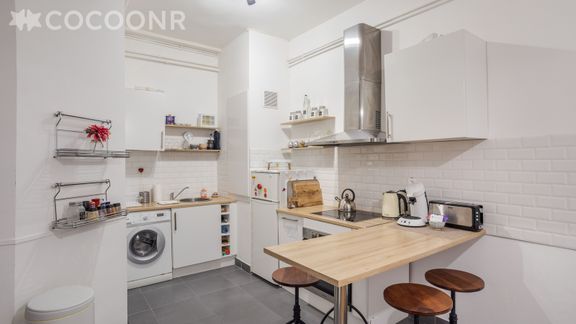 - Une cuisine semi-ouverte sur le salon séjour, entièrement équipée : réfrigérateur, four, plaques à induction, micro-ondes, bouilloire, grille-pain, cafetière à filtre...