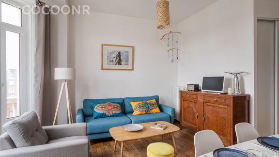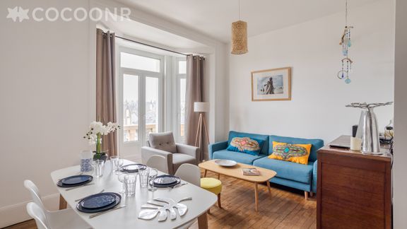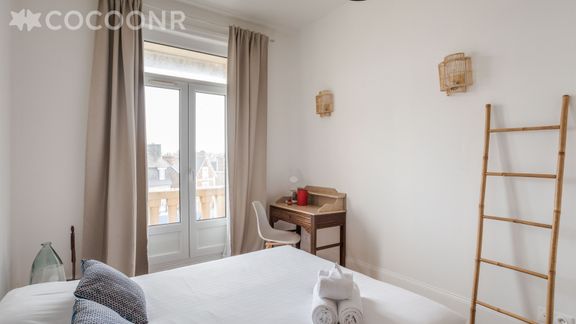 L'agence Cocoonr vous propose à la location, à Saint-Malo, ce charmant appartement de 60m2, à proximité de la plage, avec wifi (fibre optique), d’une superficie de 60 m² et pouvant accueillir jusqu’à 4 voyageurs. Situé au 3ᵉ étage (sans ascenseur), il se compose d’une jolie pièce à vivre, cuisine équipée, de deux belles chambres, une salle de bain (avec douche). Le ménage est inclus dans la location et du linge de qualité hôtelière 4* vous est fourni (draps, serviettes de toilette, torchons), votre lit sera préparé à votre arrivée.