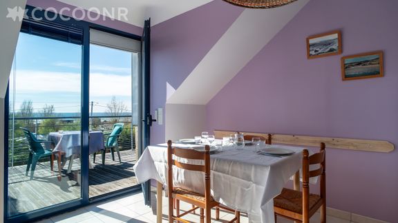- Une terrasse face à la mer de 14 m² avec une table et des chaises pour profiter des beaux jours