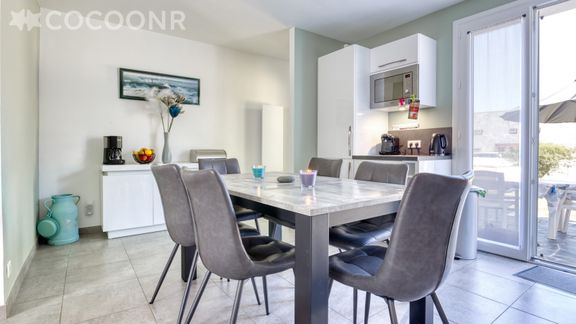 Maison très fonctionnelle, propre, bien équipée, au calme, facile d’accès, à 5 mn de la plage à pieds.