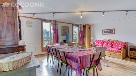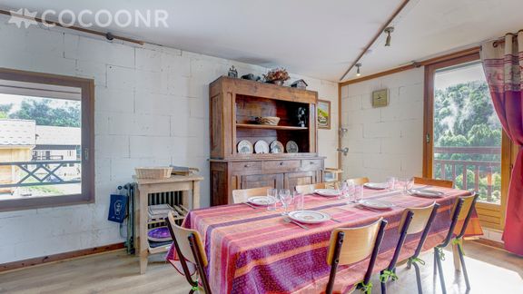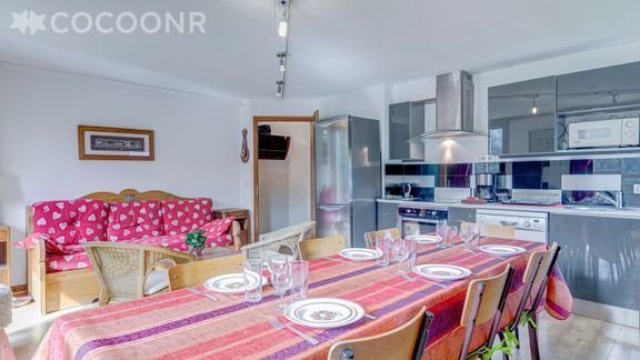 L'appartement pouvant accueillir 7 personnes, se compose d'une pièce de vie agréable avec coin salon-salle à manger et cuisine ouverte, 2 chambres, une salle d'eau et un balcon avec une vue imprenable sur la montagne et le village !