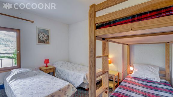 - Chambre 2 : un lit superposé ainsi que deux lits simples. Idéal pour les enfants.