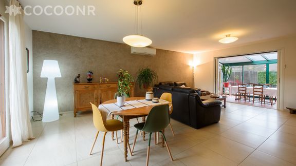 - Une pièce de vie de 40 m² avec salon, coin repas et d'une véranda de 15m².